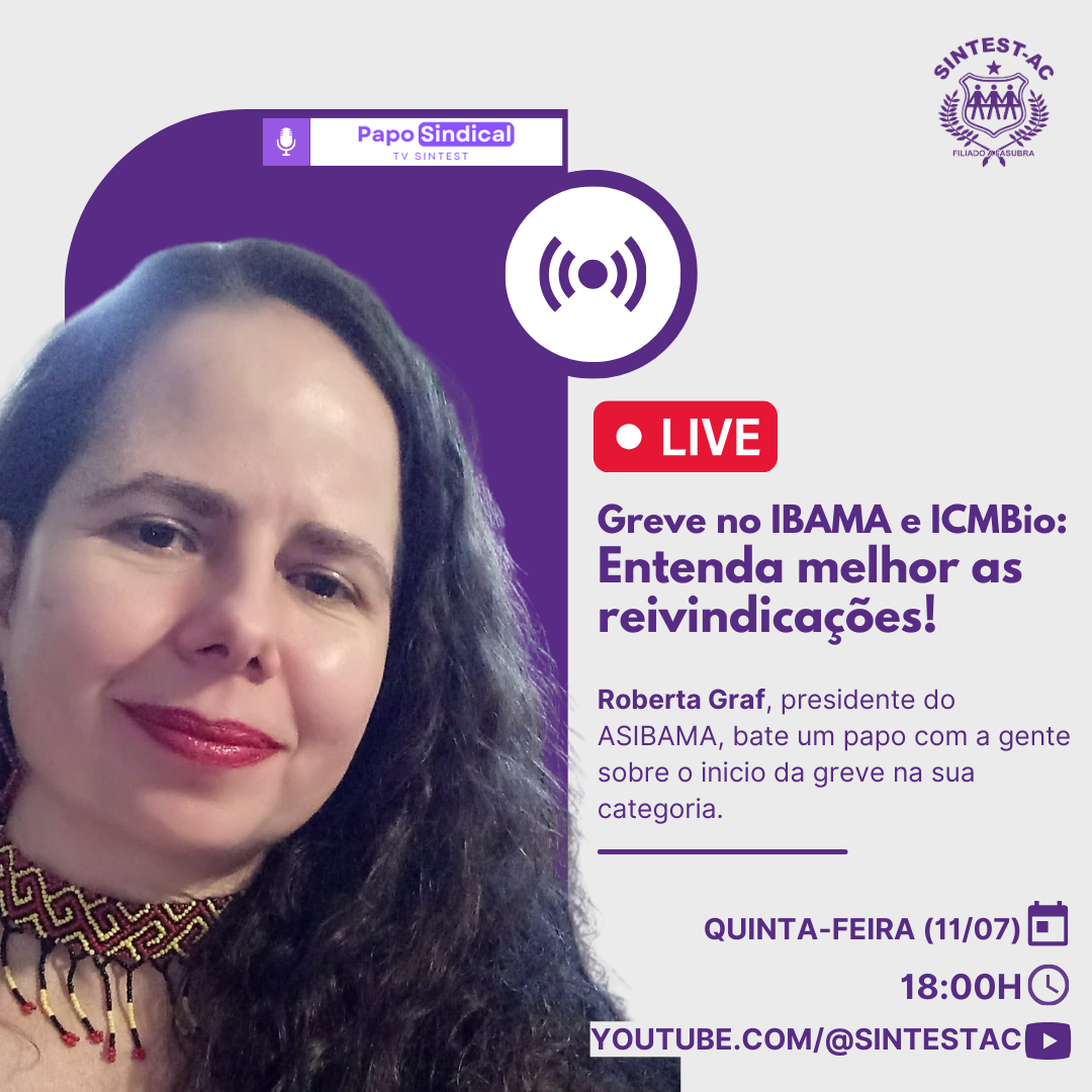 🔥 TODO APOIO AOS GREVISTAS DO ASIBAMA! SE É GRAVE, É GREVE! O Sintest/Ac se solidariza e ver mais » 22/07/2024